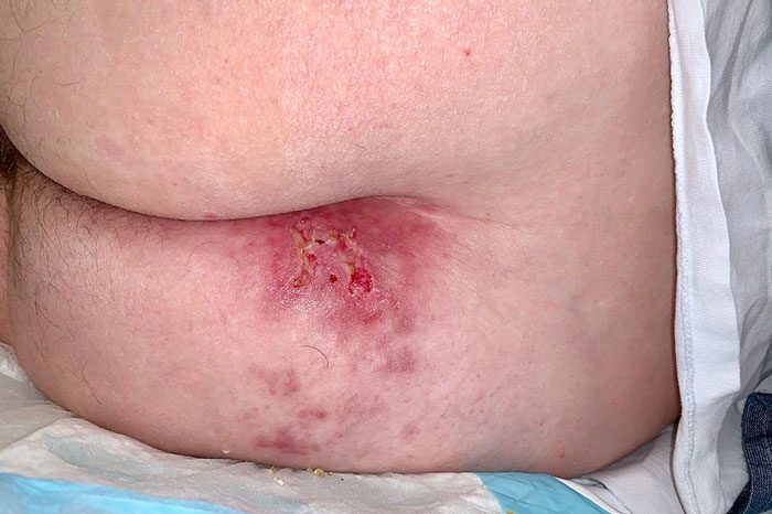در این مرحله ، التهاب استخوان ، معروف به استئومیلیت ، امکان پذیر است. ماهیچه ها و استخوان های نمایان شده را می توان مستقیماً دید.