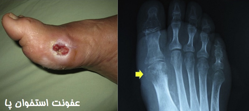 زخم پای دیابتی بسیار مستعد عفونت است. اگر درمان زخم پای دیابتی به موقع انجام نشود و آسیب هم چنان باقی بماند، ممکن است عفونت کند. عفونت زخم نیز با عمیق تر شدن ممکن است به استخوان ها و تاندون برسد. کمبود اکسیژن و گردش خون ضعیف هم در چنین مواردی درمان را کند تر کرده و موجب گسترش عفونت می شود . درمان عفونت در این قسمت ها به مراتب سخت تر از عفونت های پوستی و سطحی است و اگر به موقع انجام نشود، حتی ممکن است به قطع عضو بیانجامد.