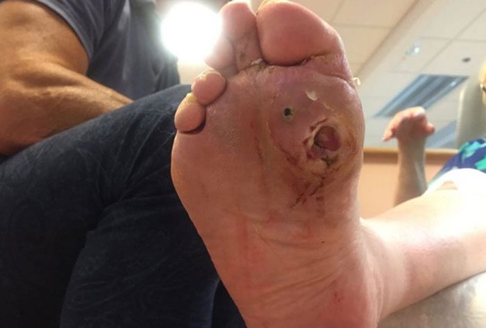 افراد با آسیب عصبی احساس درد یا سایر علایم زخم را کمتر احساس میکنند؛ به همین دلیل است که درمان زخمها دشوارتر میشود. ابتلای بیماران دیابتی به زخم اغلب با ریسک هایی همراه است؛ زیرا ممکن است پیشرفت زخمها و شدید شدن آنها منجر به قطع عضو شود. به همین دلیل لازم است مراقبتهای مناسب برای جلوگیری از این عوارض انجام شود.
