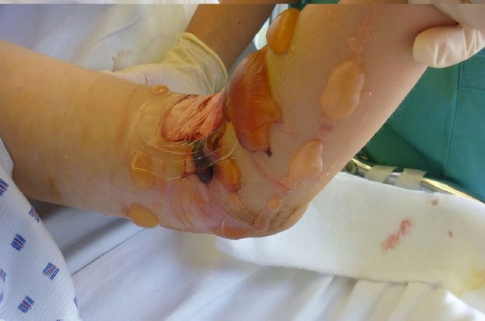تاول های شکستگی با مایع شفاف