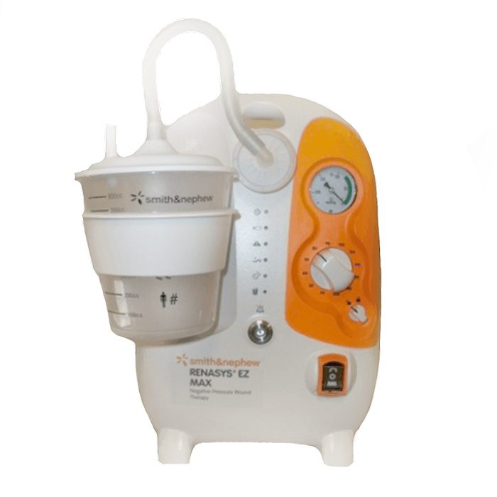 دستگاه وکیوم تراپی رناسیس مکس اسمیت اند نفیو جهت درمان زخم های مزمن مانند زخم بستر و زخم دیابتی کاربرد داشته و با ایجاد فشار منفی موجب تخلیه ترشحات زخم و بسته شدن سریعتر آن می گردد.