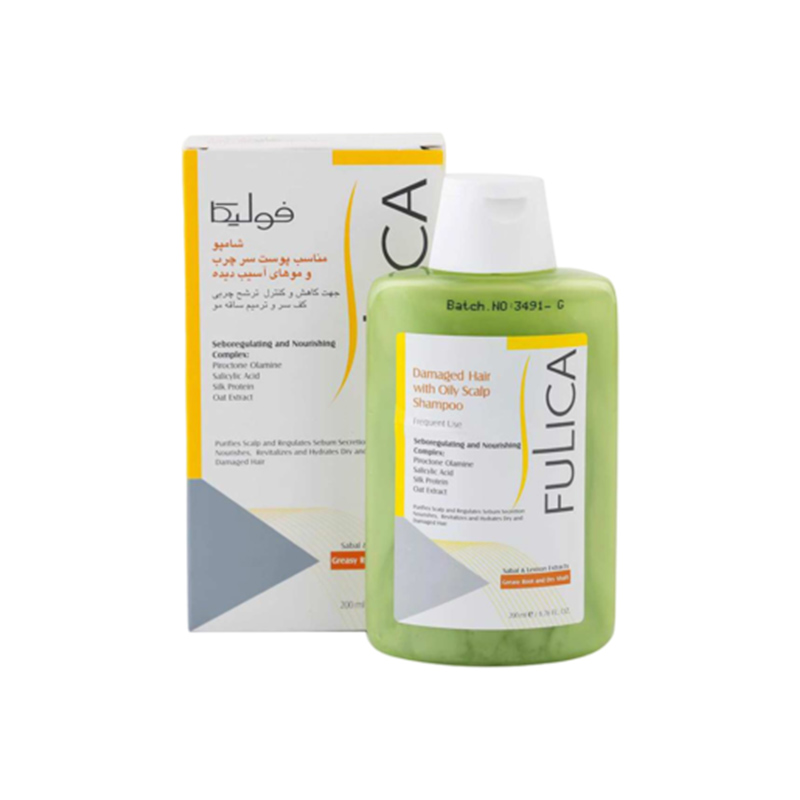 شامپو فولیکا مخصوص پوست سر چرب و موهای آسيب دیده حجم 200 میلی لیتر