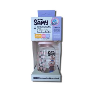شیشه شیر شیشه ای سامی SAMY با سر پستانک سیلیکونی 120 میل