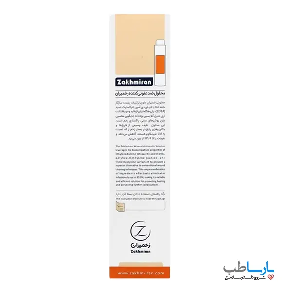“محلول ضدعفونی کننده زخم زخمیران حجم 500 میلی لیتر” به عنوان بخشی از مراقبت استاندارد از زخمها، برای تمیزسازی، ضدعفونی و جلوگیری از عفونت در انواع زخمها به کار میرود. استفاده منظم از این محلول باعث کاهش بوی نامطبوع، بهبود سریعتر و جلوگیری از نکروز بافتی میشود.