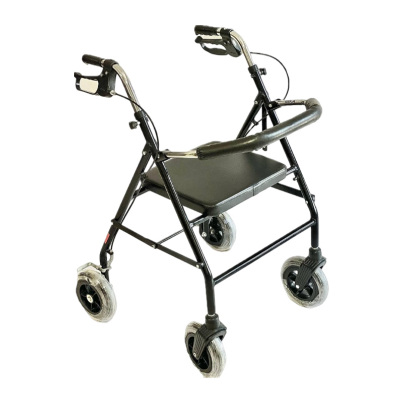 واکر چهارچرخ (رولیتر) جنس آن آهنی می باشد و دارای سبد خرید و صندلی جهت استراحت می باشد.
