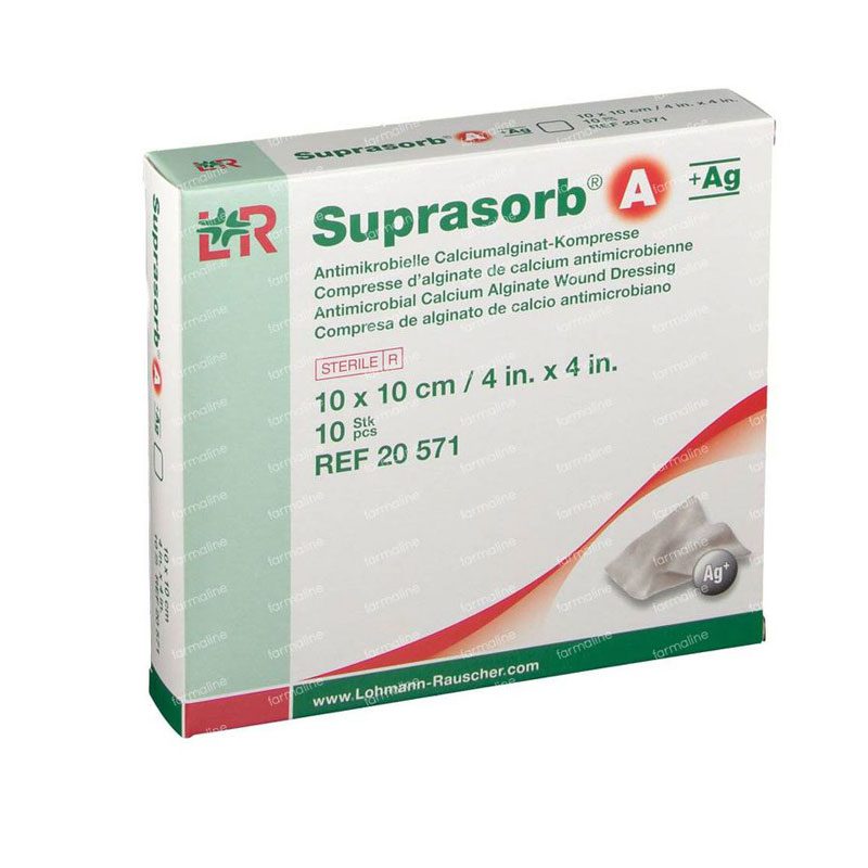 پانسمان آلژینات نقره Suprasorb A+Ag برای انواع زخم های پر ترشح و عفونی، سطحی و فیستول مناسب می باشد. این پانسمان به دلیل وجود آلژینات جاذب قوی اگزودا و به ددلیل داشتن نقره یک پانسمان با اثرات آنتی باکتریالی است.