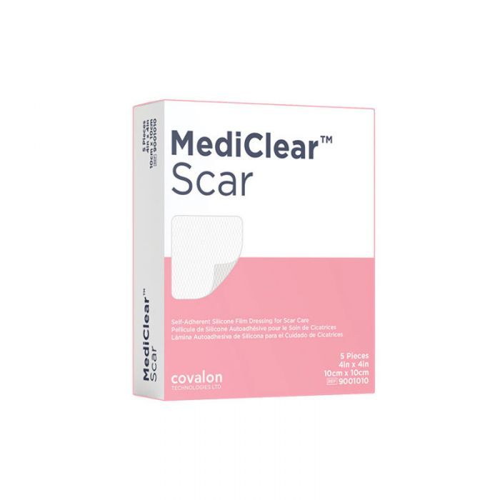 مدی کلیر اِسکار یک پانسمان پیشرفته، نازک و شفاف از نوع فیلم سیلیکونی خود چسبنده است. این پانسمان از یک فیلم پلی اورتان که با یک ژل چسبنده سیلیکونی نرم پوشش داده شده تشکیل شده است. این پانسمان به نواحی اطراف اسکار چسبانده شده و به درمان و جلوگیری از اسکارهای کلوئید و هایپر تروفیک کمک می نماید.