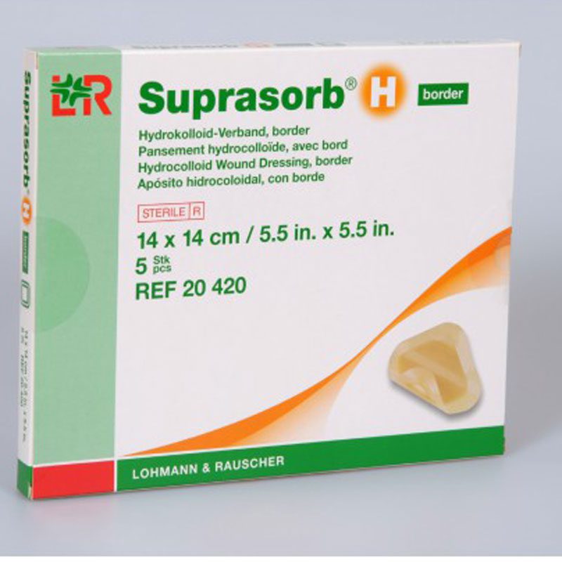 پانسمان هیدروکلوئیدی چسبدار سوپرازورب اچ لوهمن روشه، از ذرات سلولزی (CMC) با قابلیت جذب رطوبت تشکیل شده است. این پانسمان در ناحیه ی آرنج، زانو، پاشنه و تروکانتر قابل استفاده می باشد.این پانسمان برای زخم هایی که خود رطوبت مناسب دارند مناسب است و در زخم های با ترشح متوسط تا کم استفاده می شود و اکثر ویژگیهای پانسمان زخم ایده آل را دارد. هیدروکلوئیدها دارای لایه خارجی پلی اورتان غیرقابل نفوذ به آب بوده و لایه داخلی آن که روی زخم قرار می گیرد حاوی مواد هیدروکلوئیدی است. این پانسمان چسبناک بوده، خود به زخم می چسبد و نیاز به پوشش ثانویه ندارد.پانسمان هیدروکلوئید خاصیت بالشتکی هم دارد و در اندازه ها و شکل های مختلف موجود می باشد. انواع ورقه ای آن نسبت به میکرو ارگانیسم نفوذ ناپذیرند، ولی گازها و بخار آب را از خود عبور می دهند و با حفظ رطوبت پروسه التیام را تسهیل می کنند. این پانسمان در تماس با ترشحات زخم، ژل نیمه جامد با بوی خیلی نامطبوع تولید می کند که شباهت به چرک دارد و پرستار و بیمار باید از این مسئله آگاه باشند چرا که ممکن است با عفونت اشتباه گرفته شود.پانسمان هیدروکلویید از دسته محصولات پر مصرف در درمان زخم می باشد و در بسیاری از زخم های سطحی تا متوسط بکار می رود.