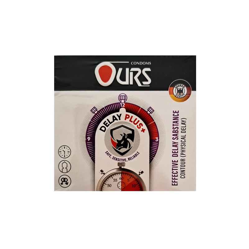 کاندوم تاخیری مضاعف Ours Delay Plus با داشتن خاصیت تاخیری ویژه خود، طرفداران زیادی پیدا کرده است. این کاندوم حاوی مواد تاخیری بنزوکایین است که باعث ایجاد بیحسی در ناحیه تناسلی مردان میشود. بنزوکایین بهکار رفته در این نوع کاندوم مقدار بیشتری نسبت به کاندومهای تاخیری عادی دارد. بنابراین میزان تاخیر در رابطه با این نوع کاندوم بیشتر است. این محصول برای کسانی که مشکل زود انزالی دارند فوق العاده مفید است. همچنین حاوی مواد روانکننده بوده و از ایجاد درد در هنگام رابطه برای بانوان جلوگیری میکند.