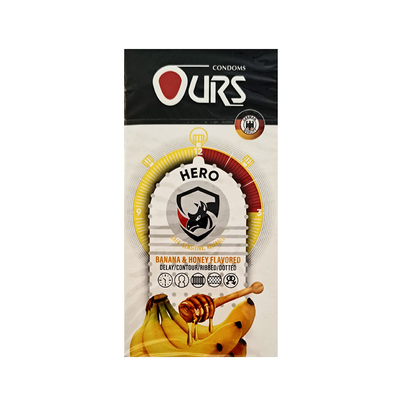 کاندوم تاخیری شیاردار هیرو اورس Ours Hero بسته 12 عددی