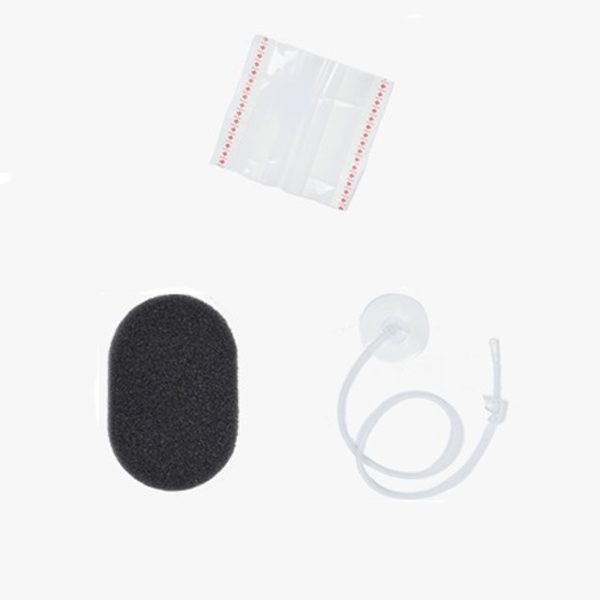 این پک شامل یک عدد فوم سیاه استاندارد هیدروفوب در سایز متوسط، لوله (Suction Pad)، چسب شفاف استریل است.
