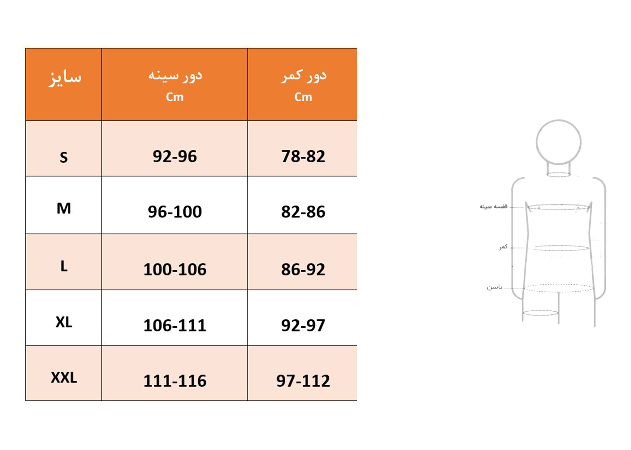 | دور کمر آقایان (Cm) | , , , , |
