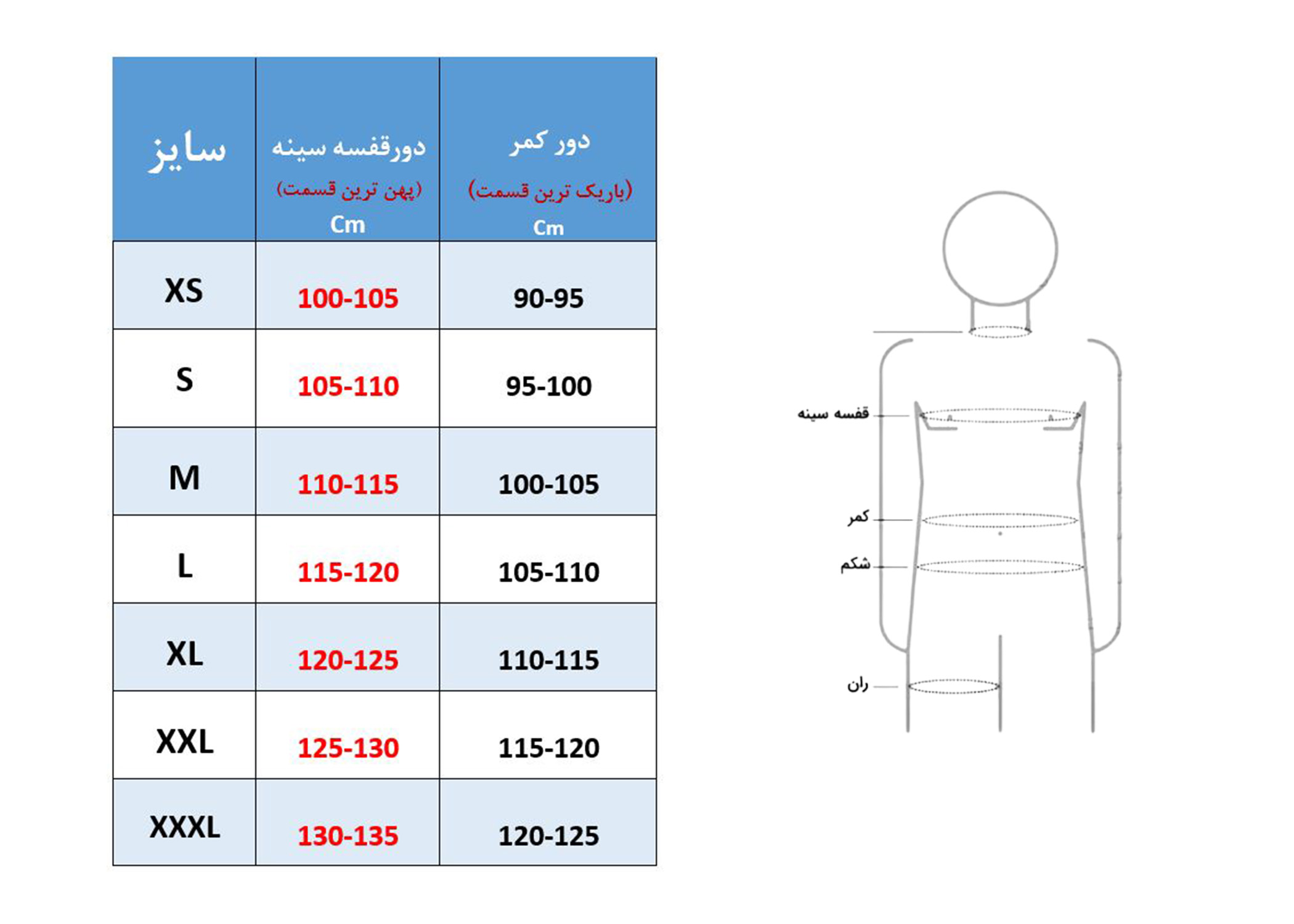| دور کمر آقایان (Cm) | , , , , , |